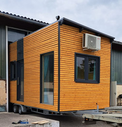 Anfang Mai 2023 war es dann soweit. Das Tiny wurde bei 2 "Tagen der offenen Tinyhaus-Tür" in der Werkstatt unseren Freunden & Bekannten präsentiert, die sich schon monatelang NICHTS darunter vorstellen konnten und dementsprechend neugierig waren. Alle waren begeistert! Von der Luftigkeit, der Raumhöhe, dem überhaupt nicht tiny Gefühl, von den Raffinessen der Fußbodenheizung und des Hubbetts, vom praktischen Kellerabteil und der gesamten Farbgestaltung der Inneneinrichtung. Unsere Freude über das Lob war groß. Harald war stolz, dass sein Werk so gut angekommen ist.